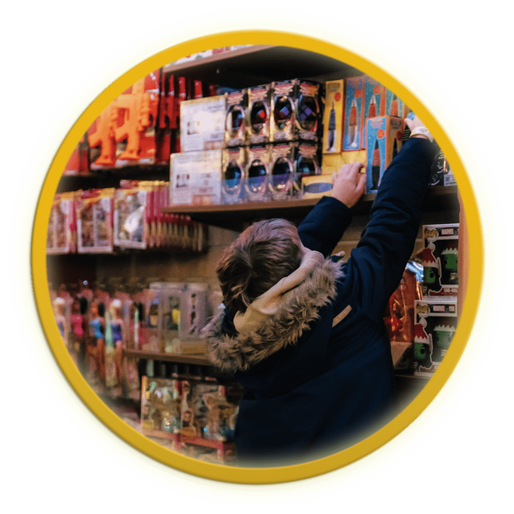 Take a trip to the magical Christmas toy store, where you can exchange your toy voucher for a wonderful gift.
